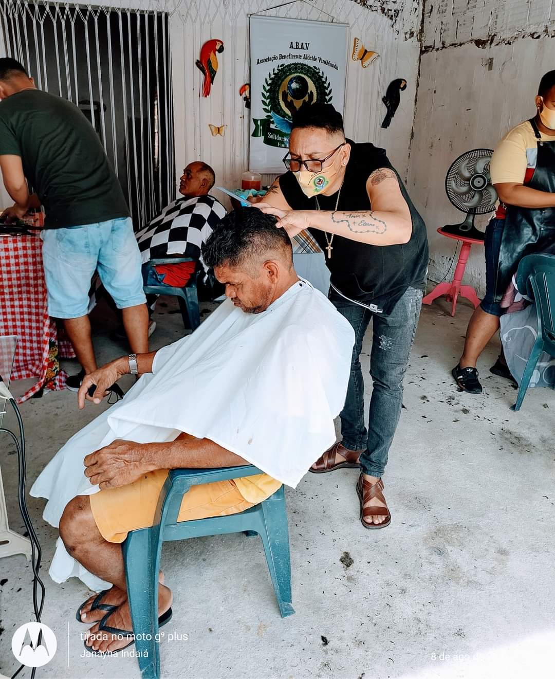 Então, em maio de 2020, no auge do primeiro grande pico da pandemia, Janaína relatou ao pai Jefferson que faria uma doação de 100 quentinhas e 100 água para as pessoas em situação de rua na praça do Ferreira. Foi elaborado um cardápio baseado na comida ofertada aos pretos velhos de Aruanda, já que não poderia ter o festejo por conta do isolamento social rígido. O que iniciou como uma ação individual de Janaína tornou-se uma ação institucional com o engajamento de irmãos, irmãs de santo de amigos e amigas. A ação carregava, naquela época, o nome de Indaiá Solidário, apelido de Janaína Rodrigues. No entanto, Janaína não queria com a ação fazer uma autopromoção e logo as pessoas envolvidas oficializaram o projeto e juntos criaram a Associação Cultural e Beneficente Aldeide ViraMundo. uma homenagem à matriarca da raiz. E devido à ação envolver vários coletivos da casa, então, batizamos o projeto de “Projeto ViraMundo “ , carinhosamente uma homenagem ao nosso chefe superior.