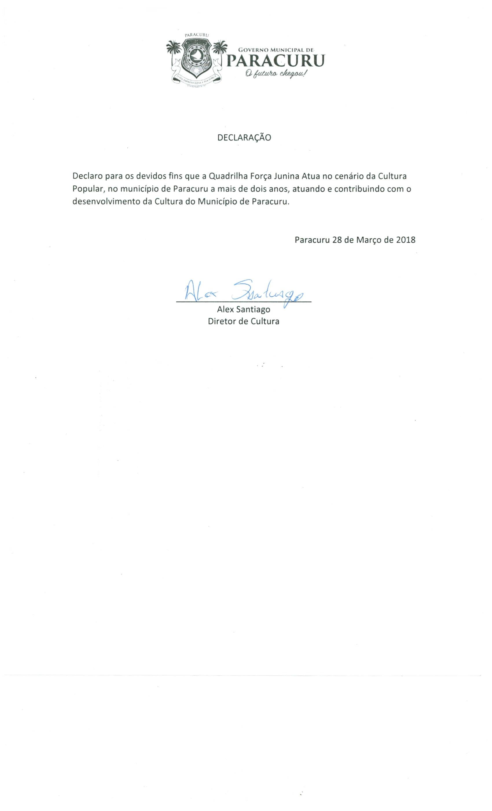 Sediada em Paracuru, cidade localizada a 90 km de Fortaleza e que possui população aproximadamente 40 mil pessoas, precisamente no distrito de São Pedro a Quadrilha Força Junina há quinze anos vem desenvolvendo, na região do vale do Curu e região metropolitana de Fortaleza, atividades de cunho artístico e cultural visando expandir a cultura dos festejos juninos, que são uma das maiores manifestações da cultura cearense e nordestina. Considerando que esta prática é de grande importância para a preservação da cultura local e regional e, assim também um meio de partilha cultural entre os participantes e toda a comunidade. É com muita dedicação, força de vontade e principalmente amor por esta tradição que os nordestinos amantes e praticantes deste seguimento artístico e cultural seguem, a cada ano, direcionados para o fortalecimento, difusão e promoção desta manifestação de grande relevância para a cultura Brasileira .Pois as festas juninas são sem dúvidas uma das maiores manifestações da cultura popular nordestina, na qual é onde a nação quadrilheira se envolve arduamente no intuito de preservar está tão grande riqueza cultural.