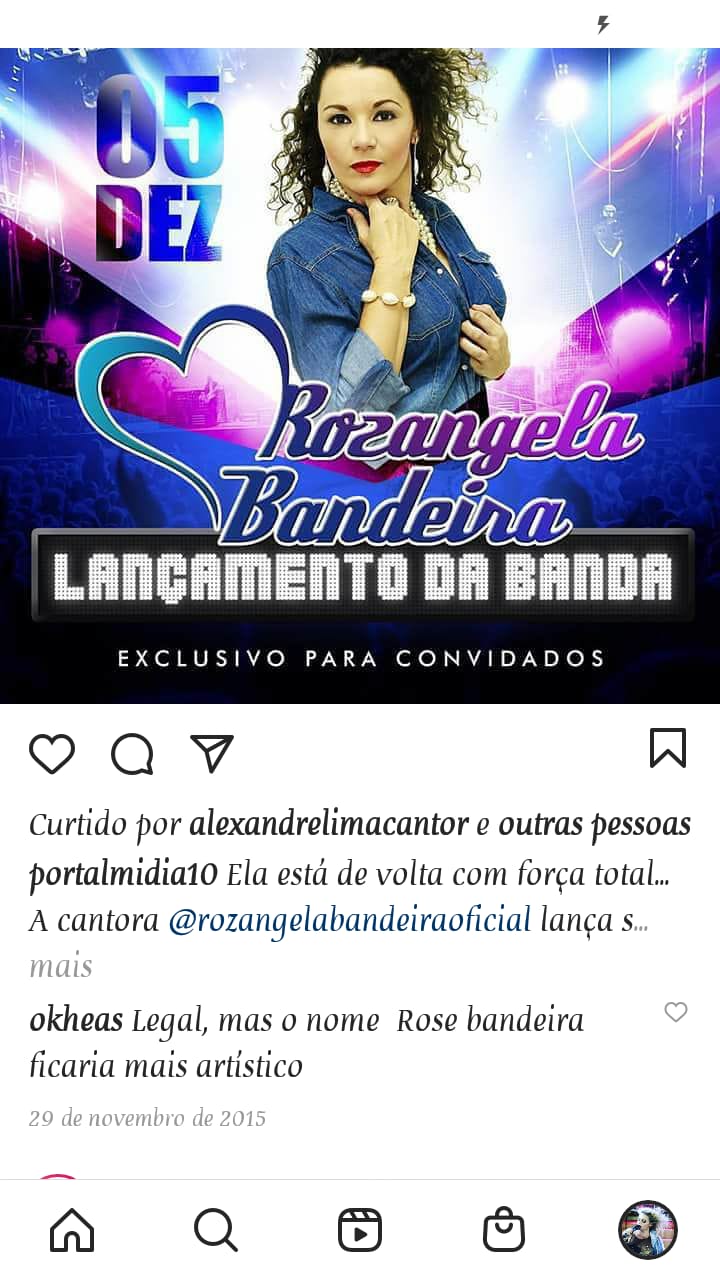 O COLETIVO ROZÂNGELA BANDEIRA E BANDA SURGIU EM 2008 DESDE QUE A VOCALISTA SAIU DA BANDA PAINEL DE CONTROLE E DECIDIU INVESTIR EM CARREIRA SOLO. COM PRODUÇÕES E APRESENTAÇÕES EM TODO TERRITÓRIO CEARENSE, COM UM REPERTÓRIO DIVERSIFICADO DE MUSICA POPULAR BRASILEIRA E REGIONAL. APRESENTANDO EM EVENTOS COORPORATIVOS, BARZINHOS, BARRACAS DE PRAIA, EVENTOS JUNINOS, FESTAS PARTICULARES, CARNAVAIS, ETC.Vídeos